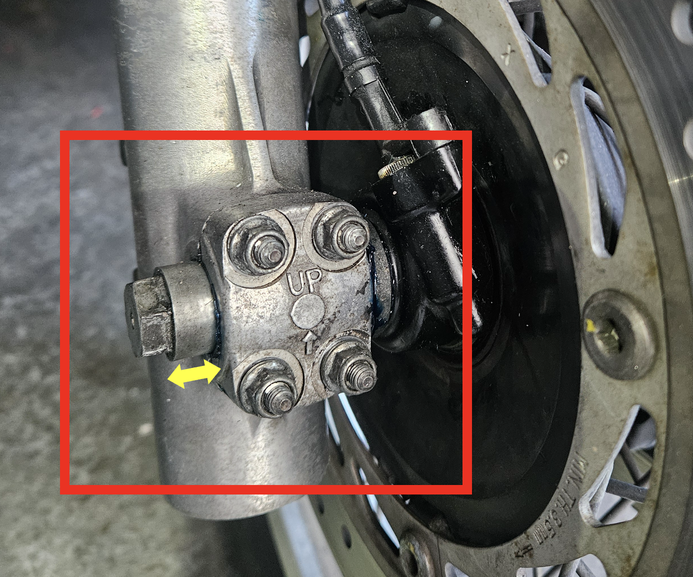 3. Sur ma moto actuellement, il y a une entretoise qui bloque le revisage complet de l'axe (revisage qui fonctionne nickel " à blanc" comme tu me l'as conseillé @marcopolo, sans la fameuse entretoise génante). Voir photo "moto actuel" où l'on voit bien l'entretoise gênante.