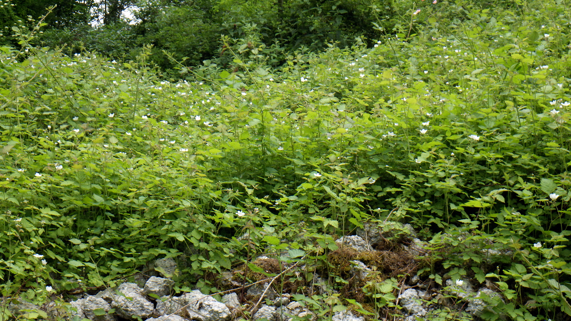 Des fleurs froissées, ça pousse sur des rochers dans une clairière