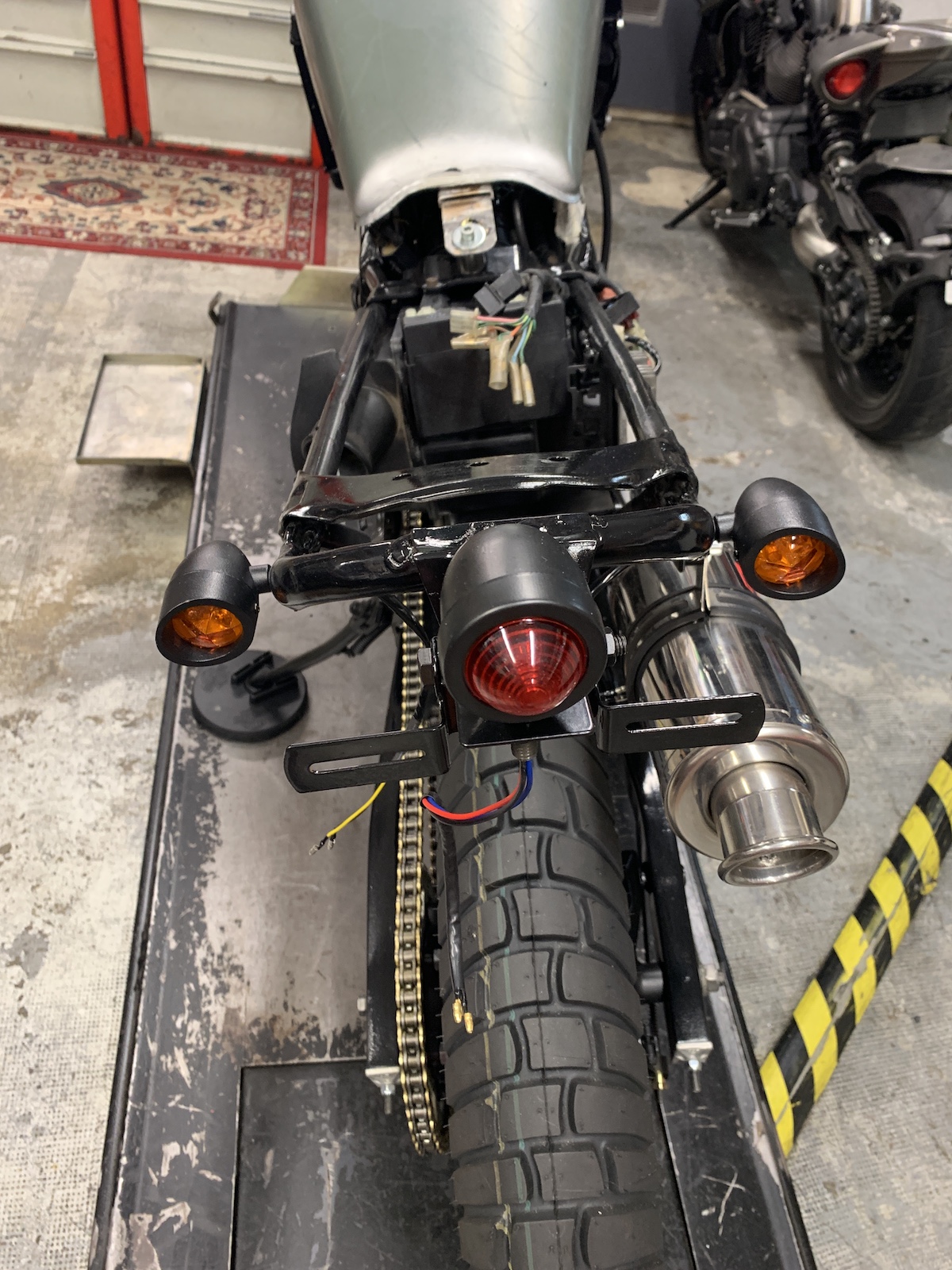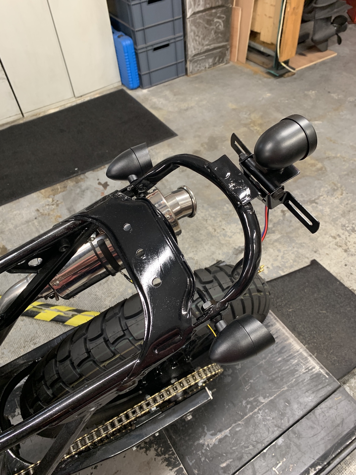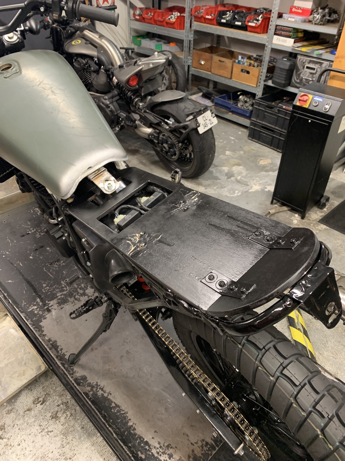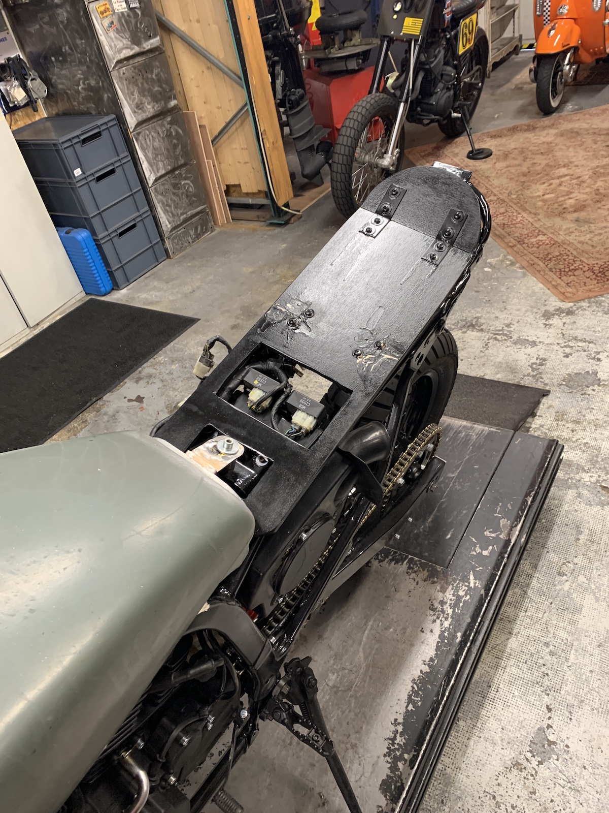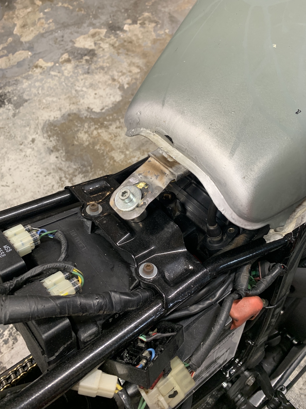 Modification des attaches de réservoir, il était mal placé. Boucle sous la selle et support. Clignos, feu arrière.