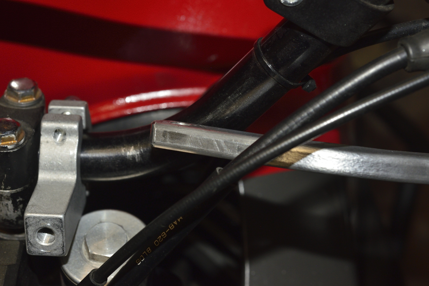 J'ai relu la notice pour les tiger et j'ai vu qu'ils conseille de mettre cette tige entre la durite de frein et les cables de gaz, du coup je vais essayer comme ça !