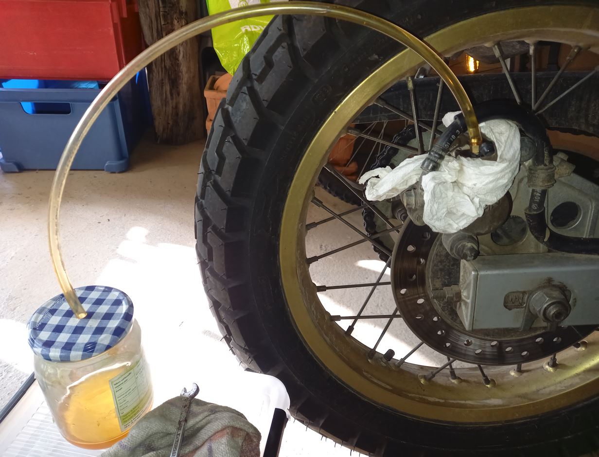 En faisant une boucle sur le vinyl de purge, çà permet de conserver toujours du DOT en sortie purgeur.