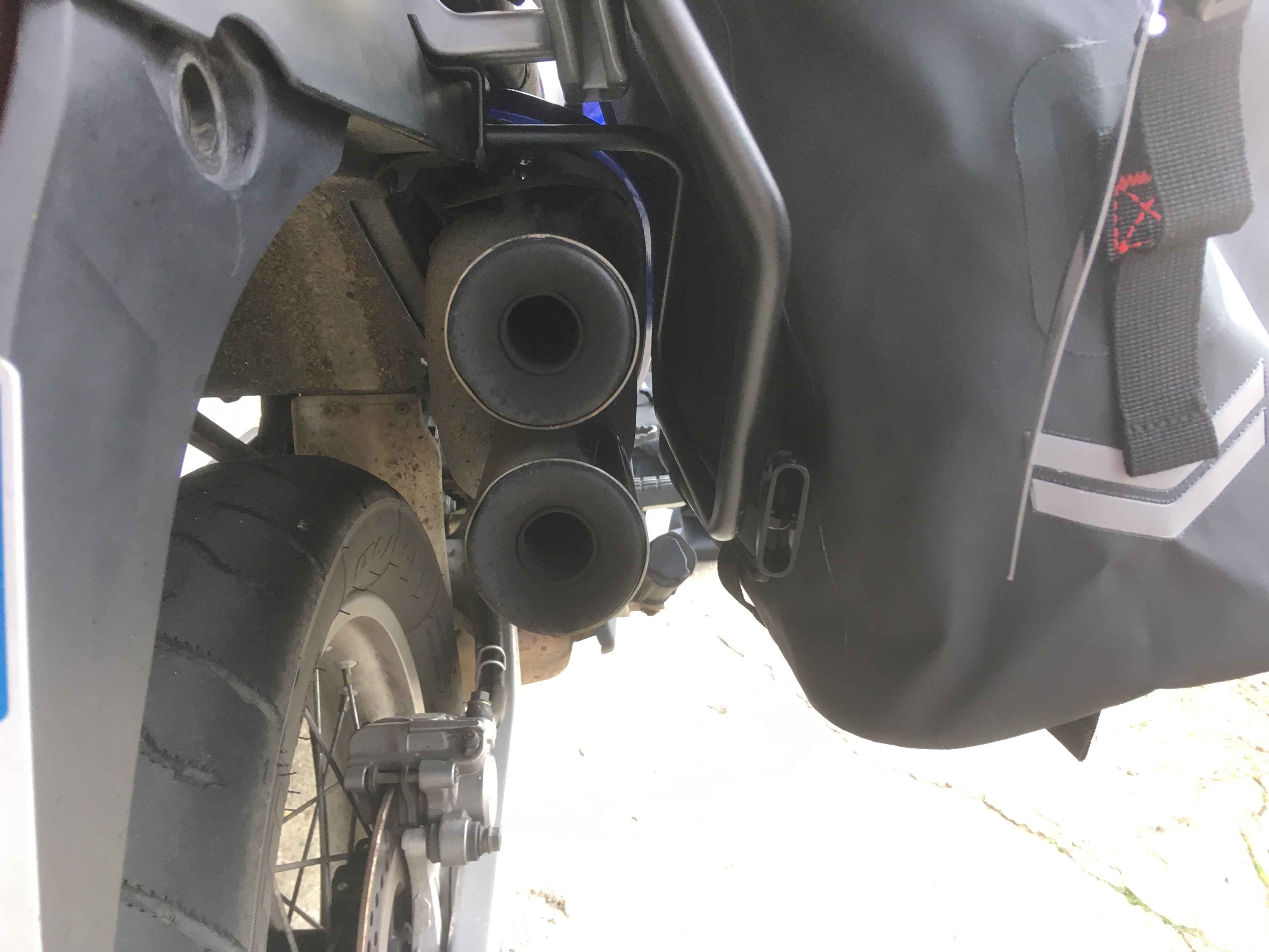 Une fois montés, ces écarteurs font leur job, et les sacoches sont à l'abri de la brûlure des pots.