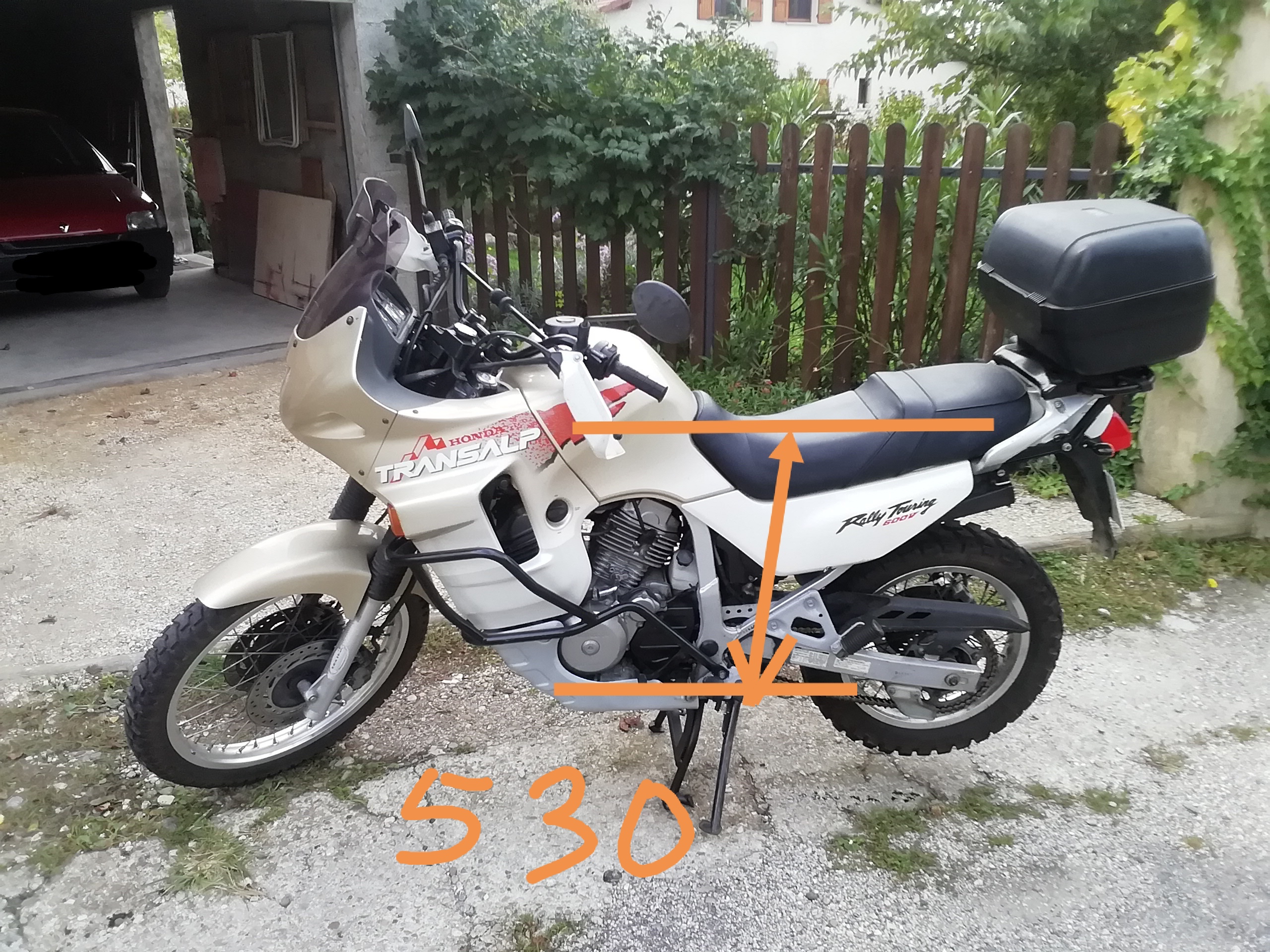 Soit personne a une 600 Transalp soit personne à un mètre ou les deux... :lol: :lol: La hauteur de selle d'une 600 Transalp d'origine, c'est bien 850 mm hein ?