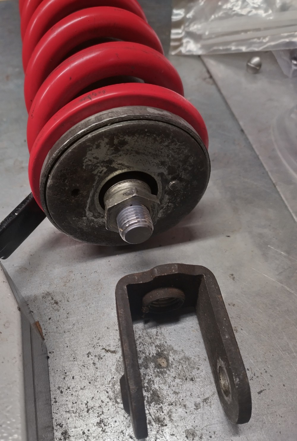 Flan le gros boulon que j'ai utilisé prend place entre la rondelle et la chape, il faut office d'entretoise