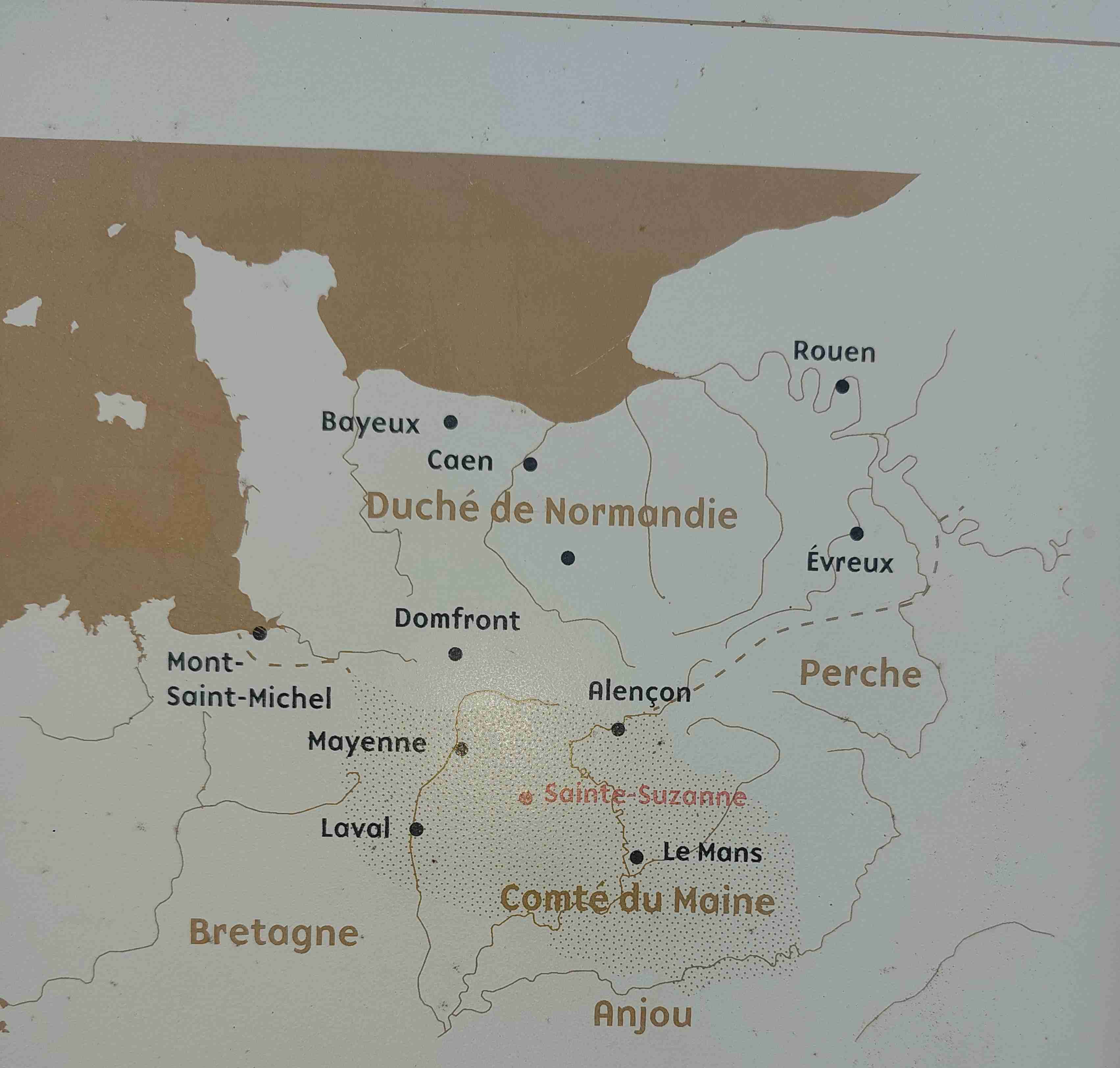 Le château de Ste Suzanne est un château médiéval qui constitue la seule place forte à avoir résisté aux assauts des troupes de Guillaume le Conquérant (XIème siècle).