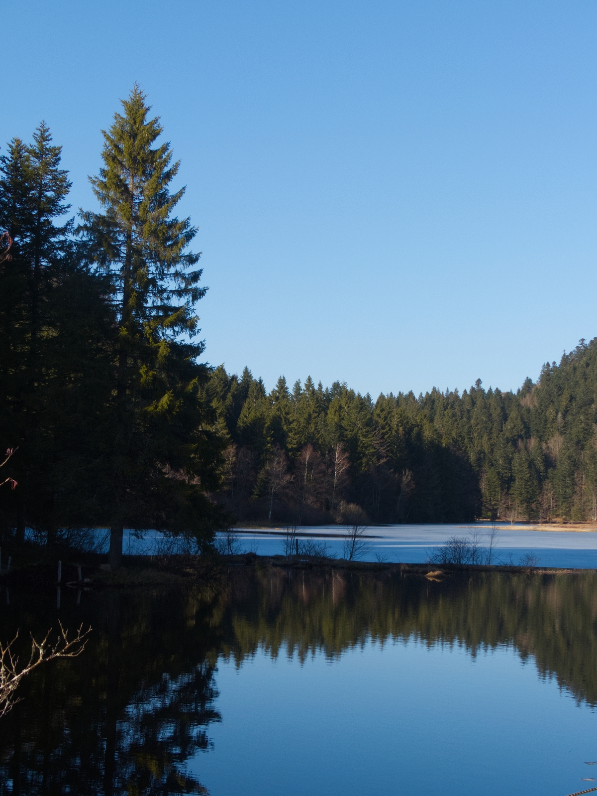 Petit arrêt près de la Bresse (Vosges) au lac de Lispach (encore partiellement gelé) dans la vallée de Chajoux. Petit air de Norvège mais pas trop loin.