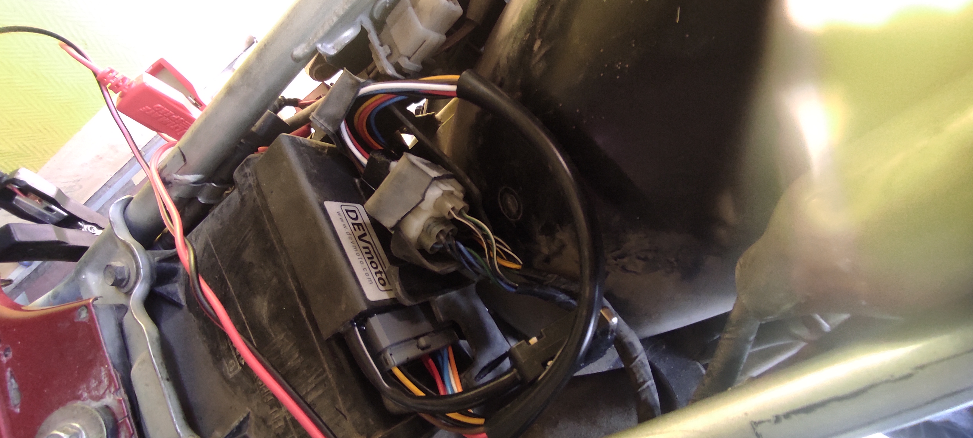 Mon CDI Ignitech Devmoto reçu, et monté sur la Rainette, le montage effectivement c'est du plug & play. Juste les prises à rebrancher dessus après suppression des deux CDI de base. Fixation faite avec double face mousse, quelques rilsans et hop c'est bon.
