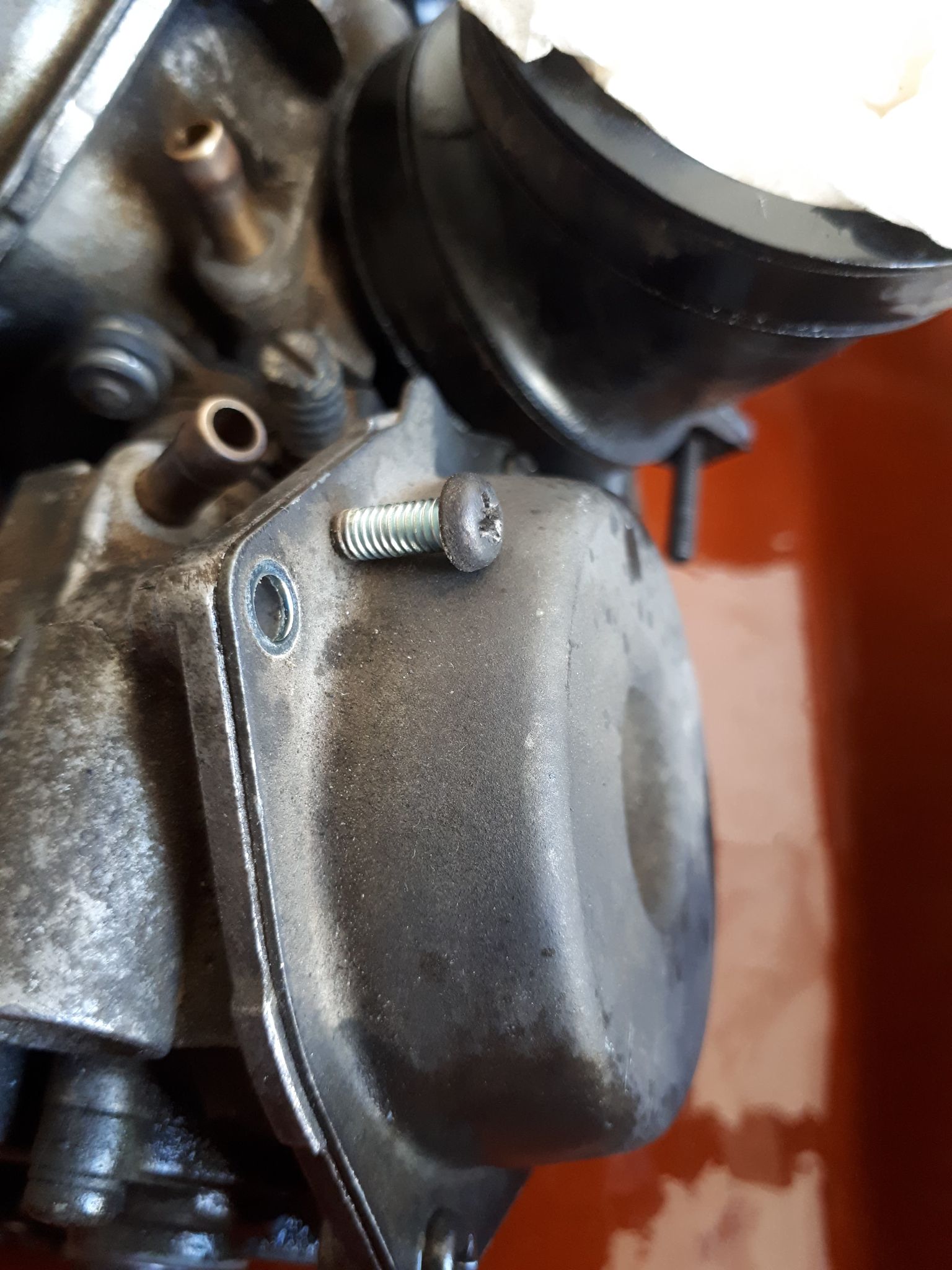 *** Oui MAIS : en regardant de plus près la RMT, il y a normalement une rondelle qui vient s'insérer entre la base de l'aiguille et le fond du boisseau... L'avis des experts ? (même si j'ai déjà eu confirmation qu'il n'y en a pas) Kekonfait maintenant ? On ouvre les cuves qui sont à l'opposé des chambres à dépression. Encore 2 x 4 vis à démonter, j'en ai encore foirée une, même technique que précédemment, même résultat. J'ai l'impression que les carbus ont été déjà démontés, et remontés au frein filet... Est-ce une bonne chose?
