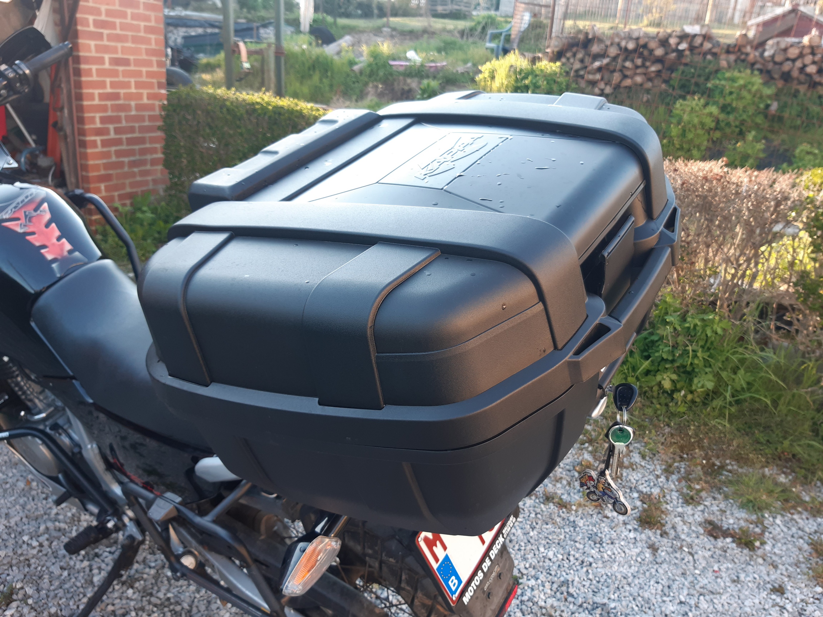 La valise c'est la kgr 52 N de Kappa. Mon topcase de 47l était trop rond et ne permettait pas de rentrer mon nouveau casque Klim. J'attends de le tester sur une longue durée pour faire un retour.