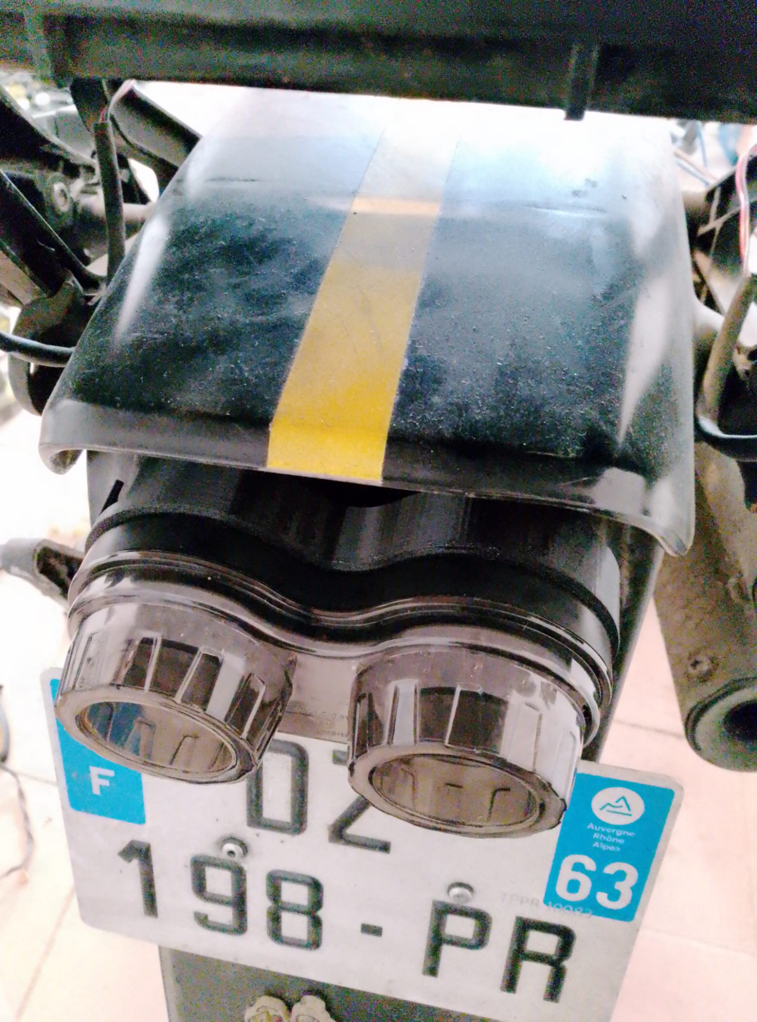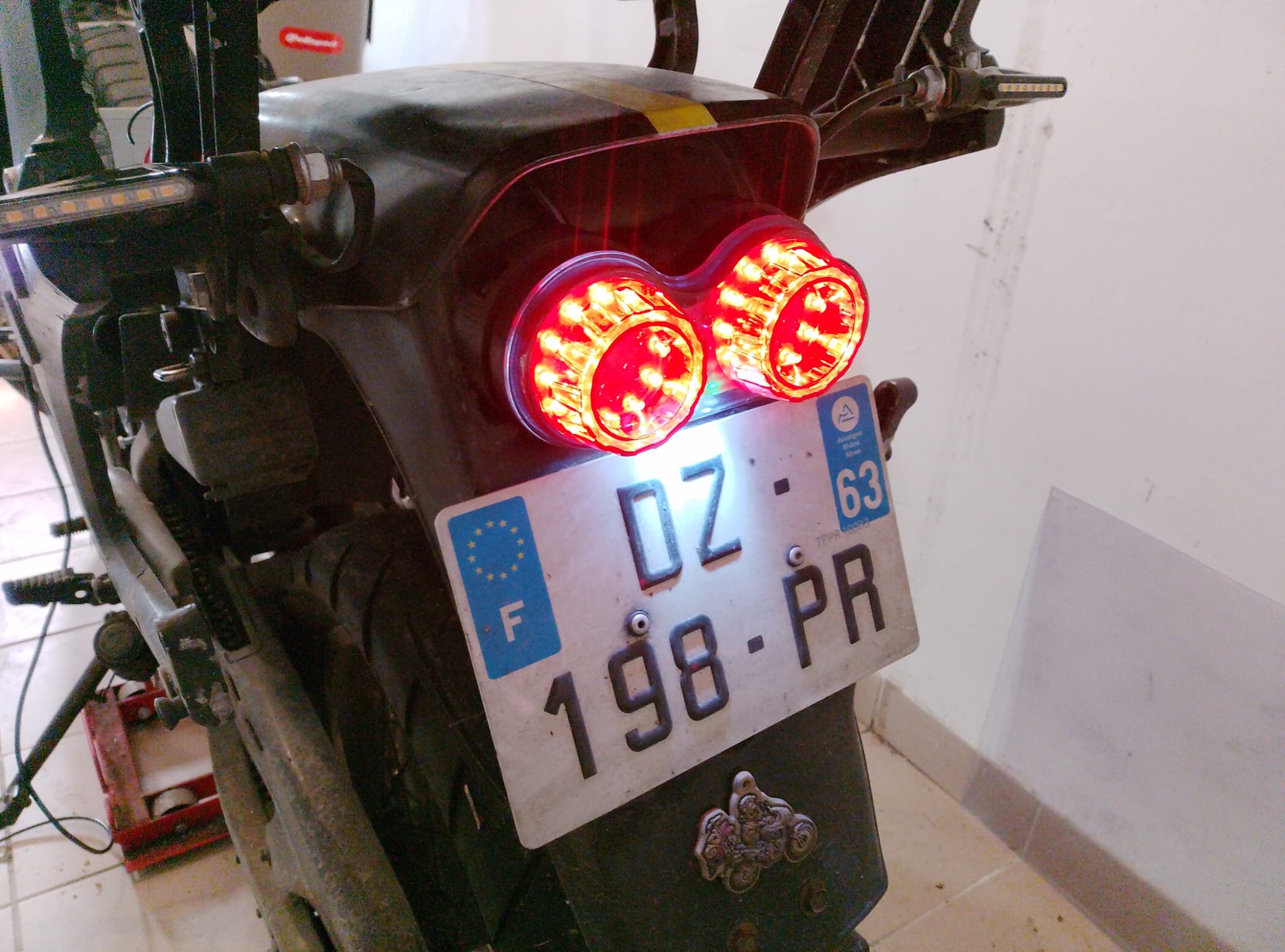 J'ai donc fait un petit support en 3D d'une qualité douteuse (pour une pièce qui ne se verra pas beaucoup, autant que ça s'imprime vite !) et intégré ce petit feu arrière. Il y a possibilité de faire clignoter les indicateurs de direction dans chaque optique mais ça faisait un peu "too much" comme ne disent plus les jeunes.