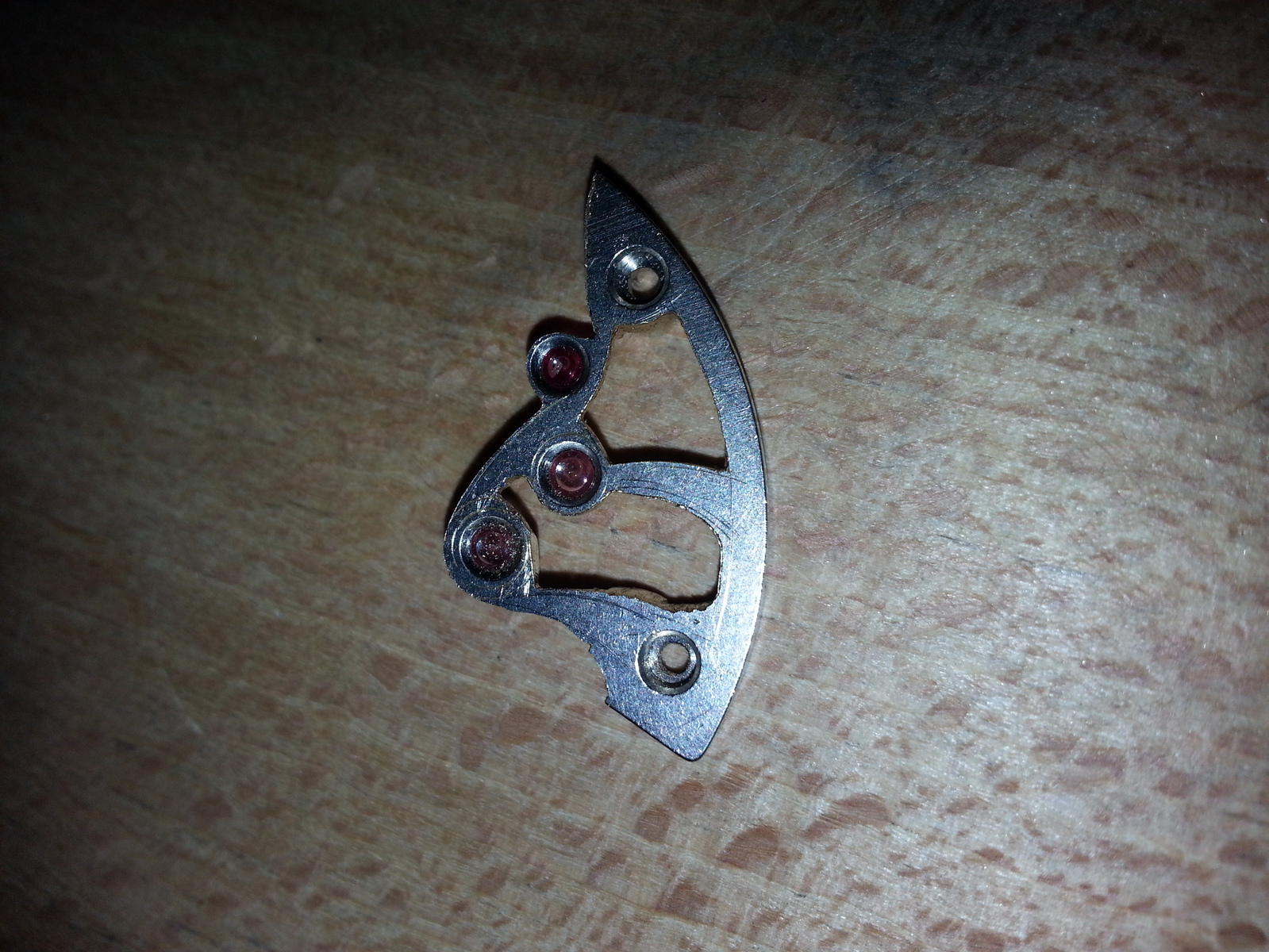 Le pont d'ancre étant trop volumineux, je l'ai découpé et fait les finitions: Et pour le pont de balancier: le balancier de la montre est fixé sur le pont de balancier, la j'ai dû l'enlever afin d'ajourer ce pont.