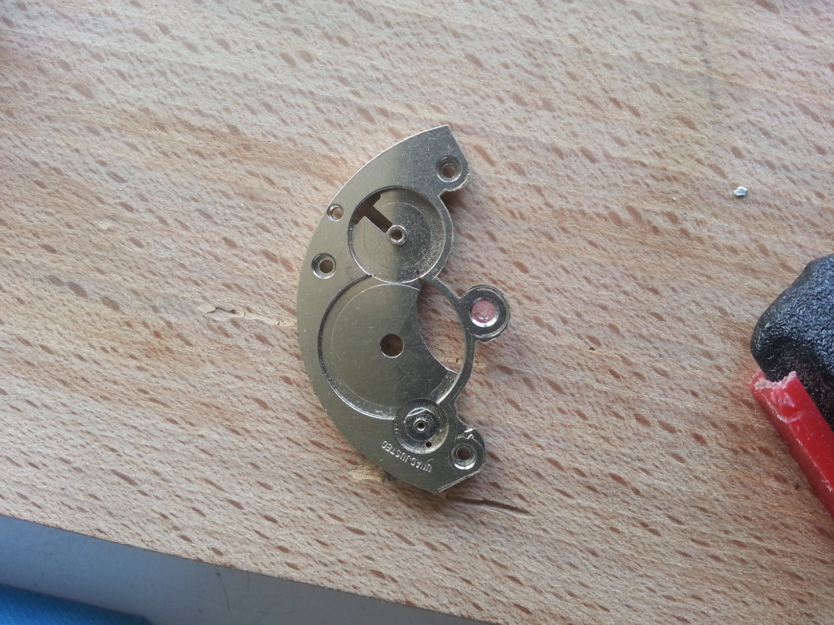 Après démontage complet de la montre, j'ai décidé de m'attaquer à la partie arrière du mouvement ( le côté ponts photo au dessus)
