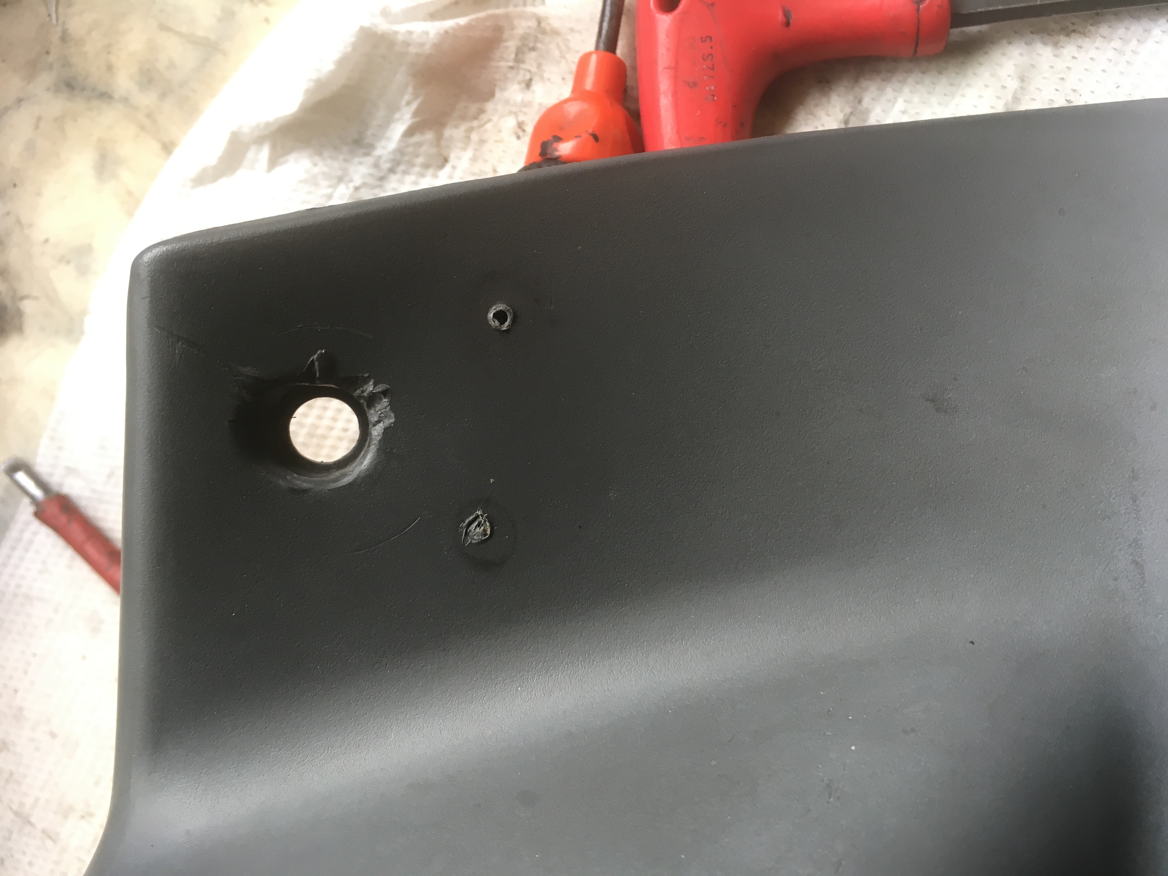 petite réparation du tdb: un ancien proprio avait vissé un support: je l 'ai enlevé, réparé le plastique a chaud et un petit coup de pistolet.