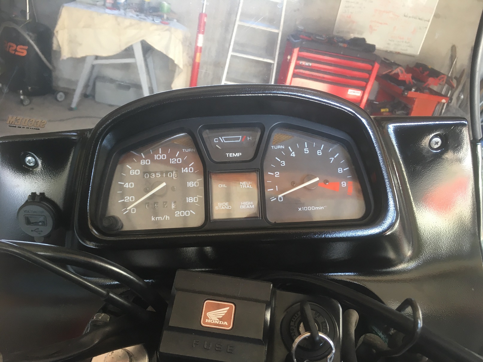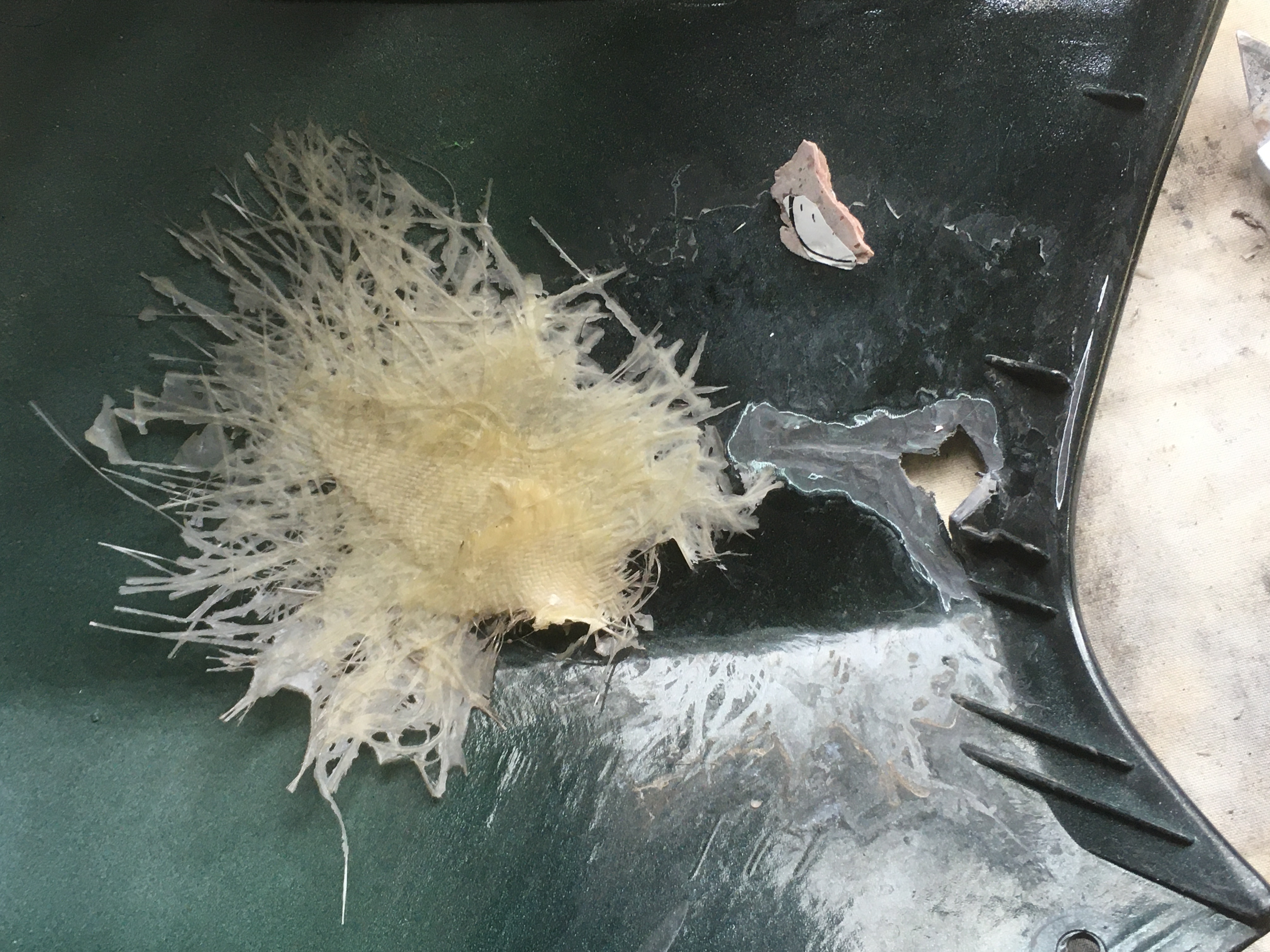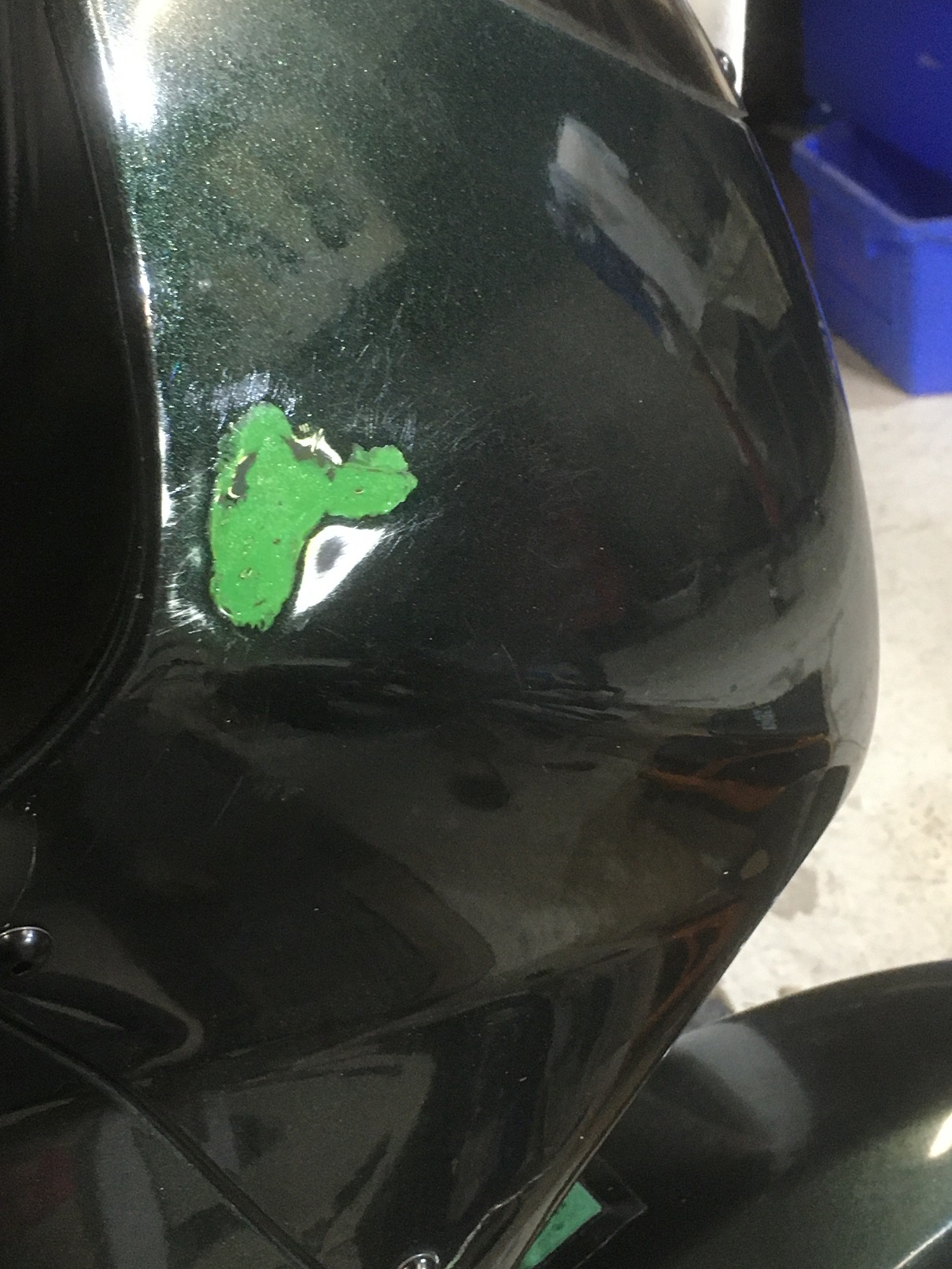 coté carénage, y' a pas mas de fissures un peu partout et un trou réparé a la fibre de verre et mastic sur la tête de fourche.