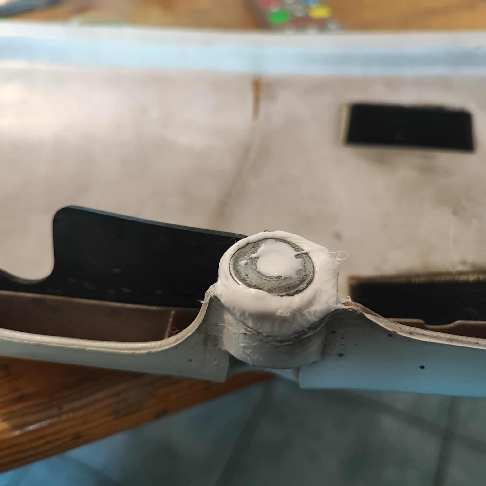 On pose de la colle Abs/Acétone sur le tour,pus j'insère une rondelle pour renforcer.