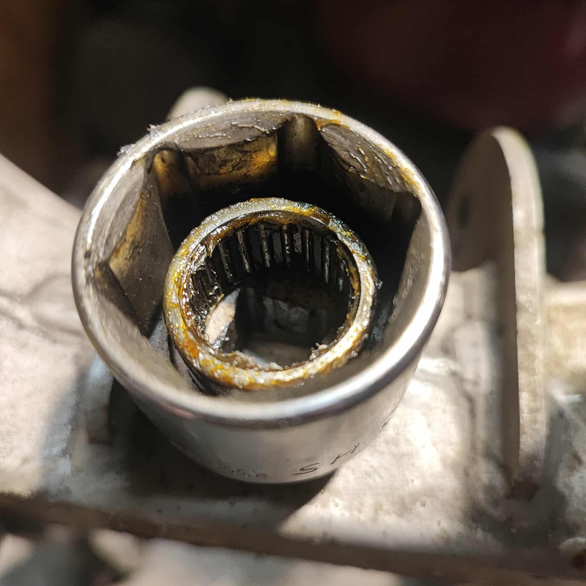 Lorsque les roulements sont près de la rondelle,je l'ai remplacé par une douille de 24 qui me permet de récupérer un roulement à la fois Le premier roulement est tombé dans la douille Le deuxième est sur le bord