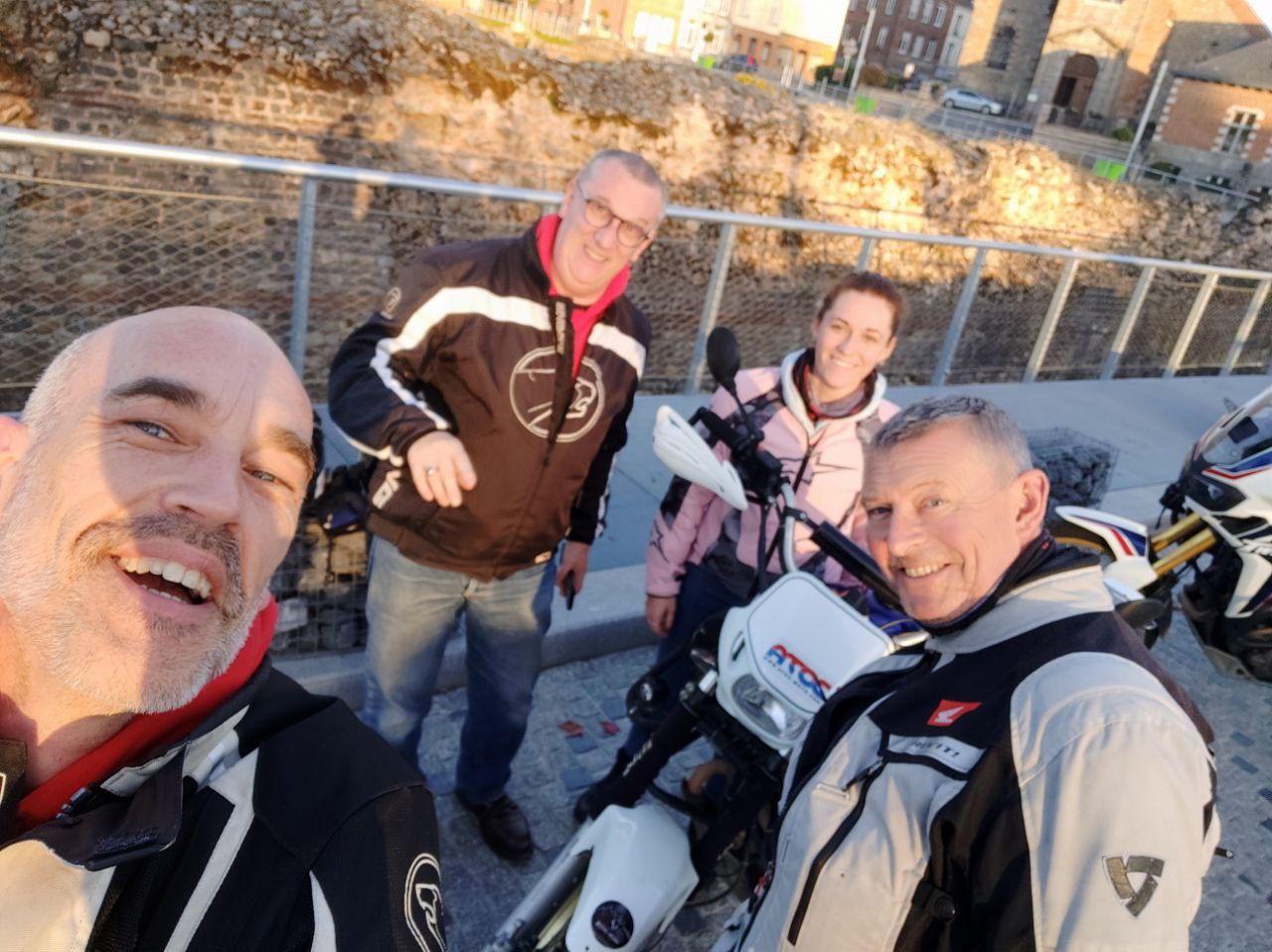 Guiohm et Brunoma18 ambassadeurs Transalpage et Relais locaux ATOC, du beau monde pour encadrer Elisa aka "Princesse" nouvelle proprio d'une belle Transalp 600 blanche et bleue juste à sa taille.
