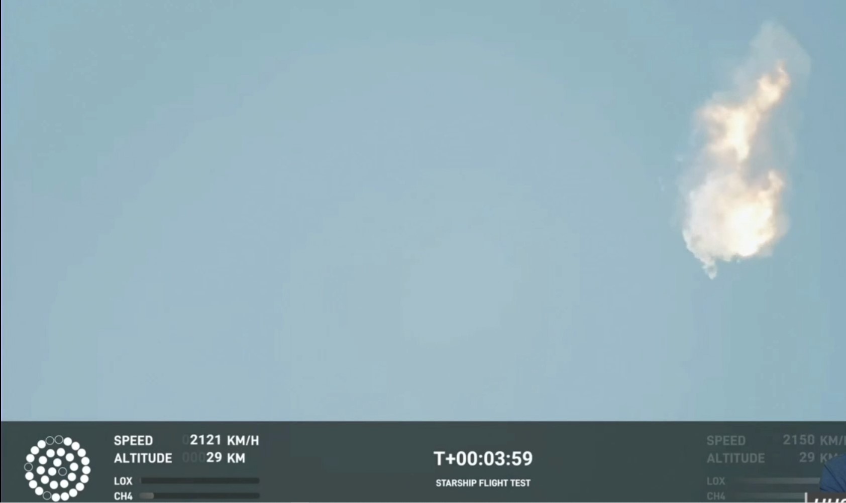 Après 18 sec. de vol, 3 des 33 moteurs ont rendu l'âme. On peut le voir dans l'infographie en bas à gauche de l'image.
