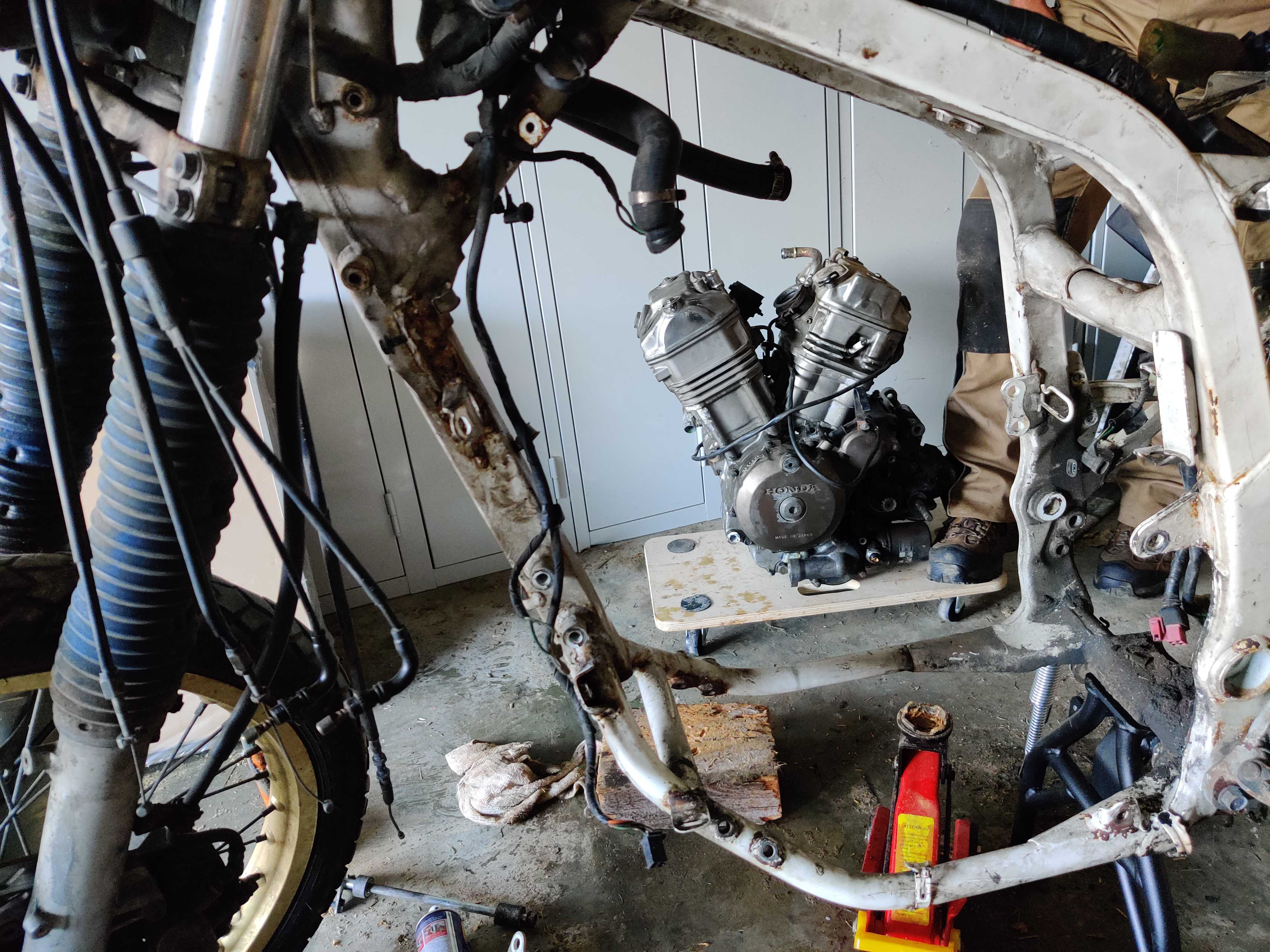 Alors j'ai quasiment tout démonté, le moteur est dehors.