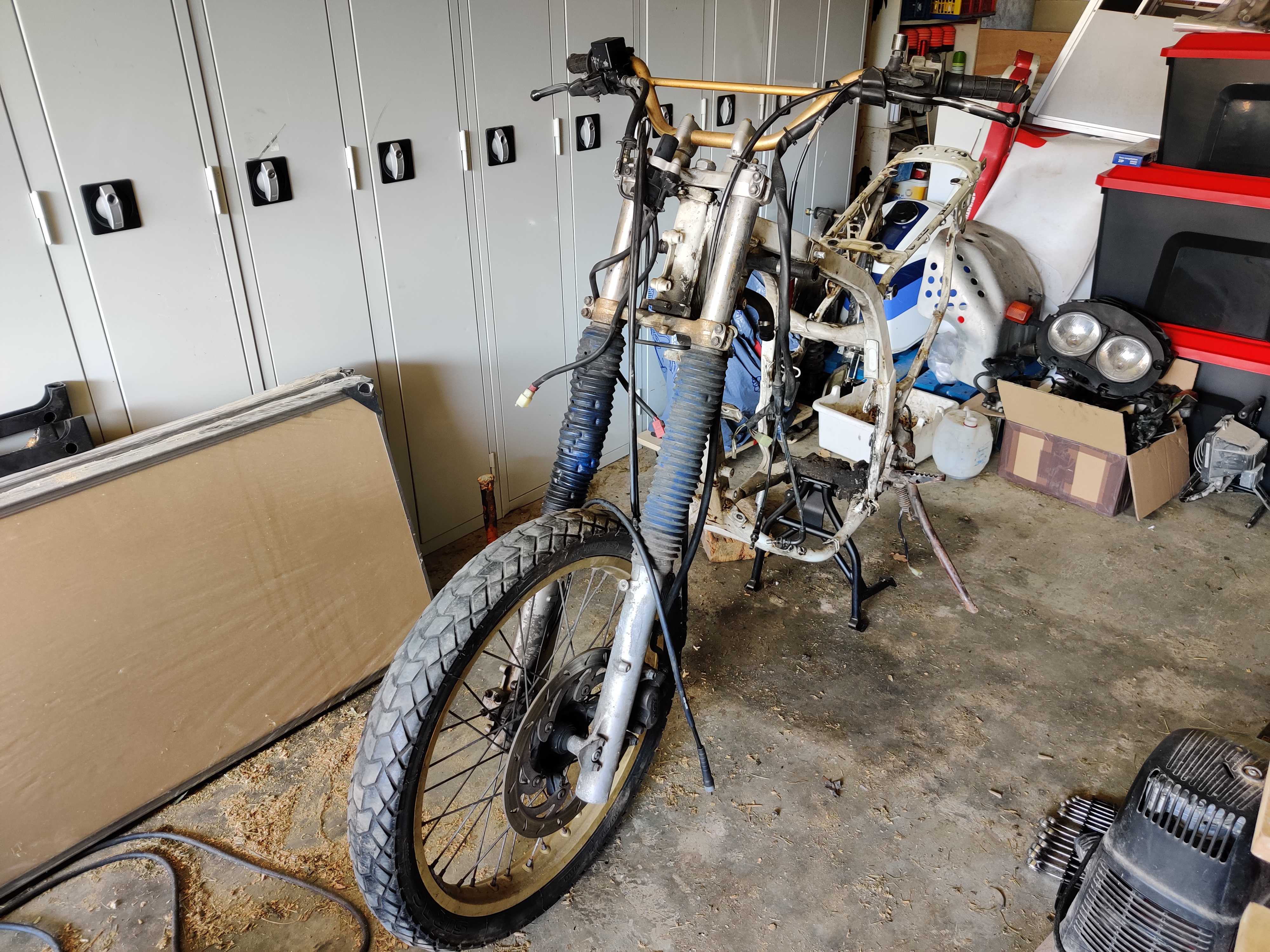 Il lui reste encore la roue avant, la fourche, guidon et quelque babioles.