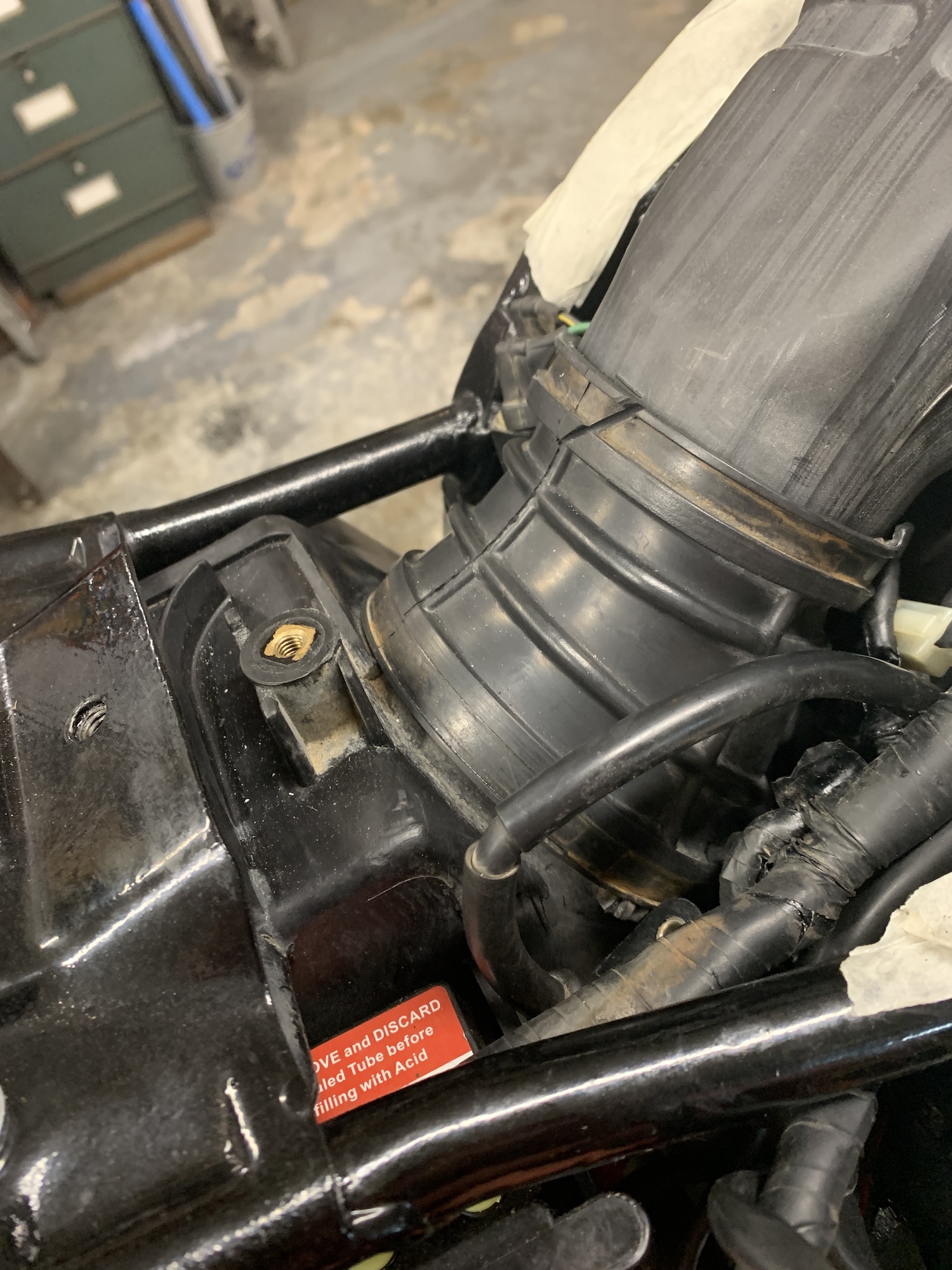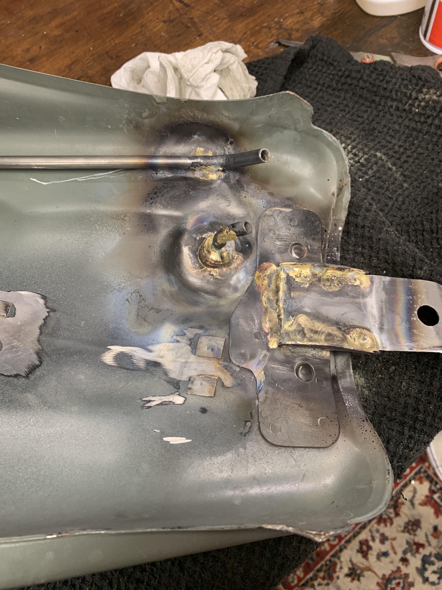 Donc, la suite. Mise en place d'un robinet d'essence avec réserve (parce que je me connais) qui me permettra d'aller à la pompe (maxi 35 km en France entre les pompes à essence), retouche des pattes de fixation pour que tout passe bien.