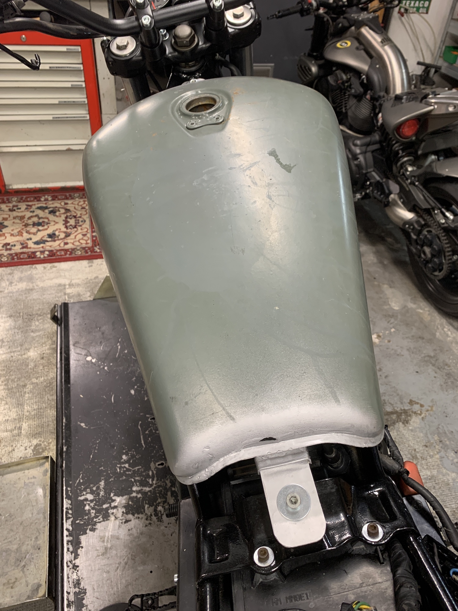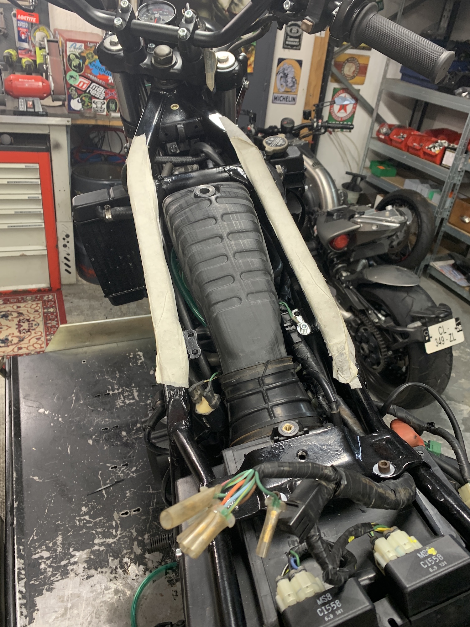 On bricole, on peaufine... Le réservoir part en peinture la semaine prochaine, et on va s'atteler à la selle...