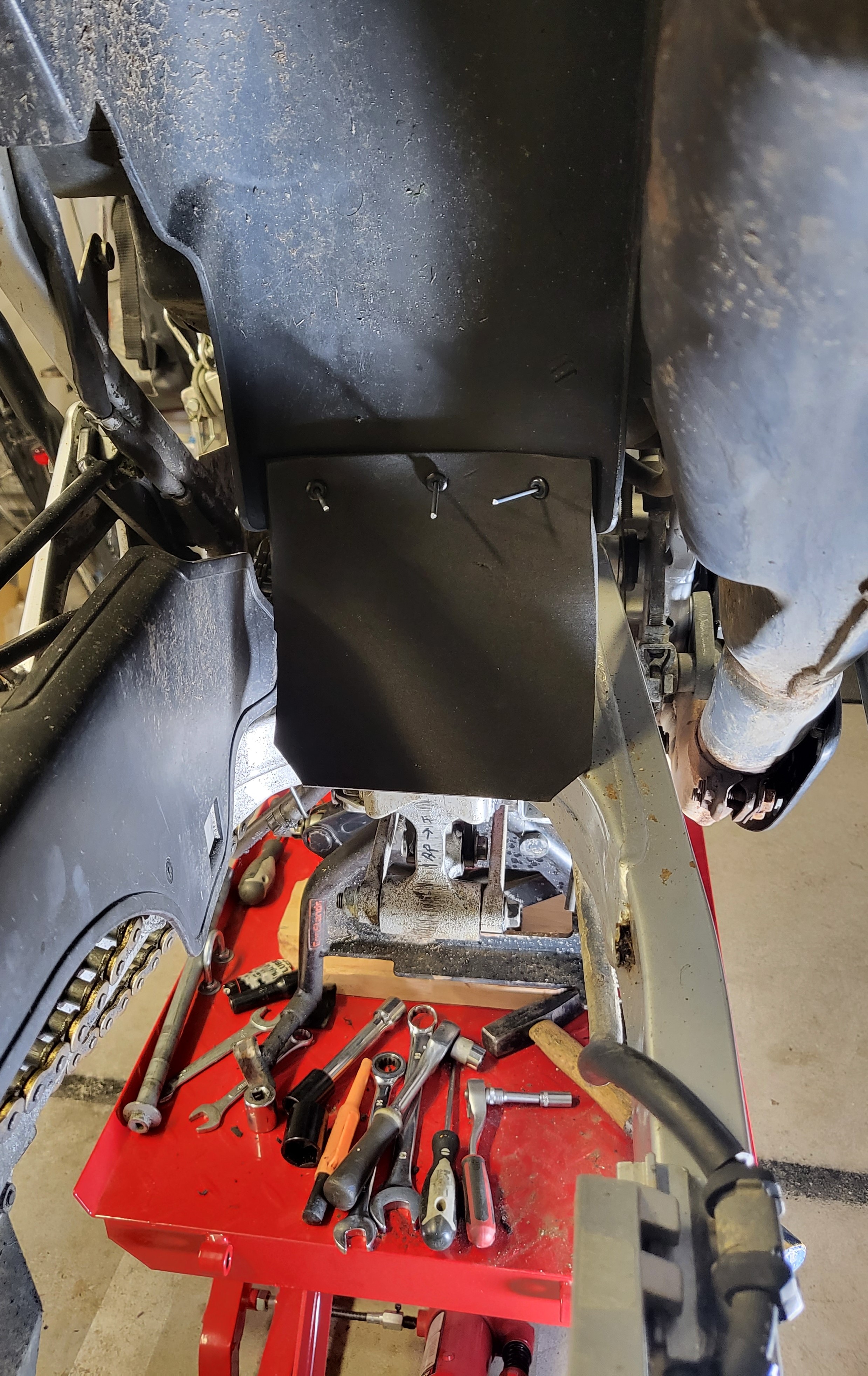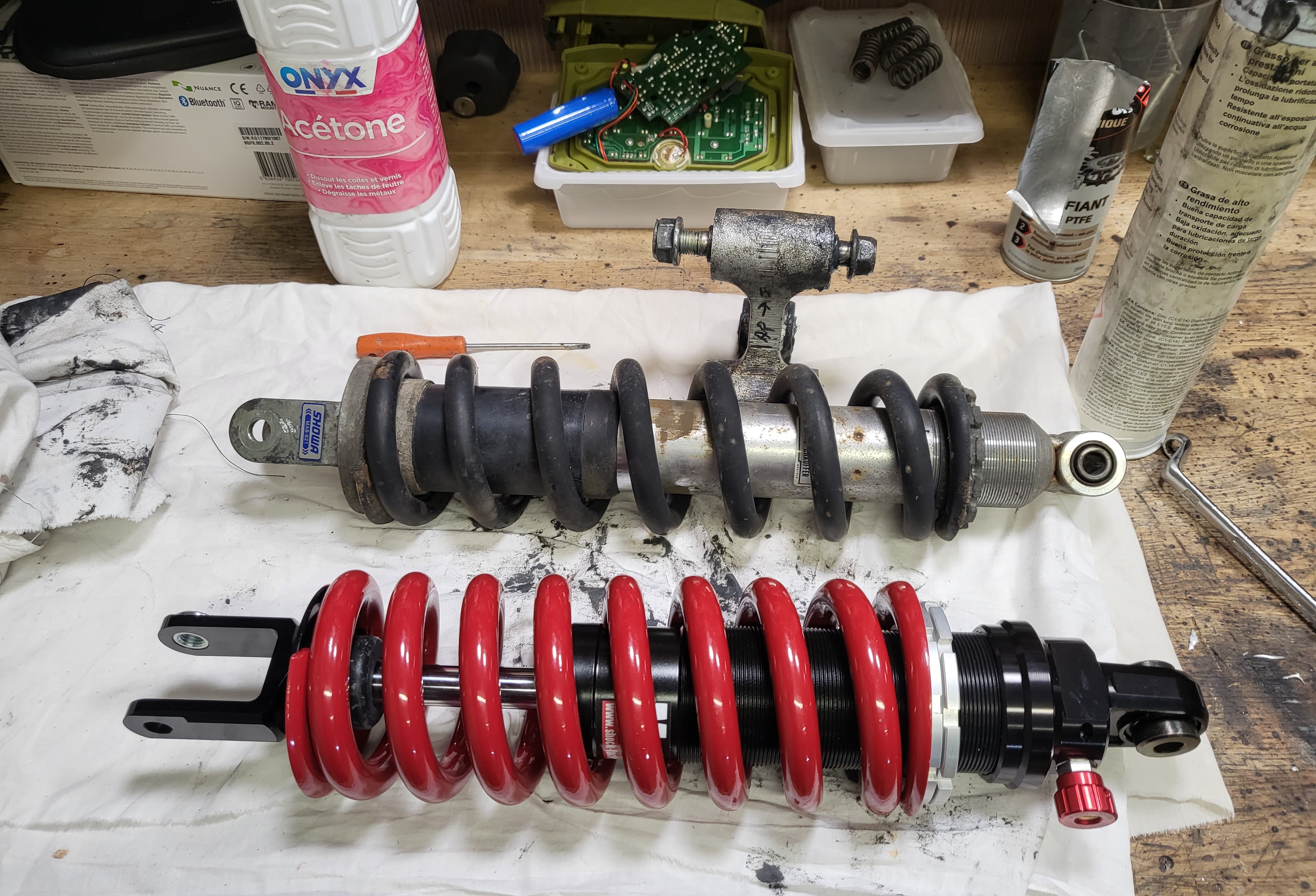 Fourche, cadre, suspension, transmission, freins, roues, bulle et carénages, ...