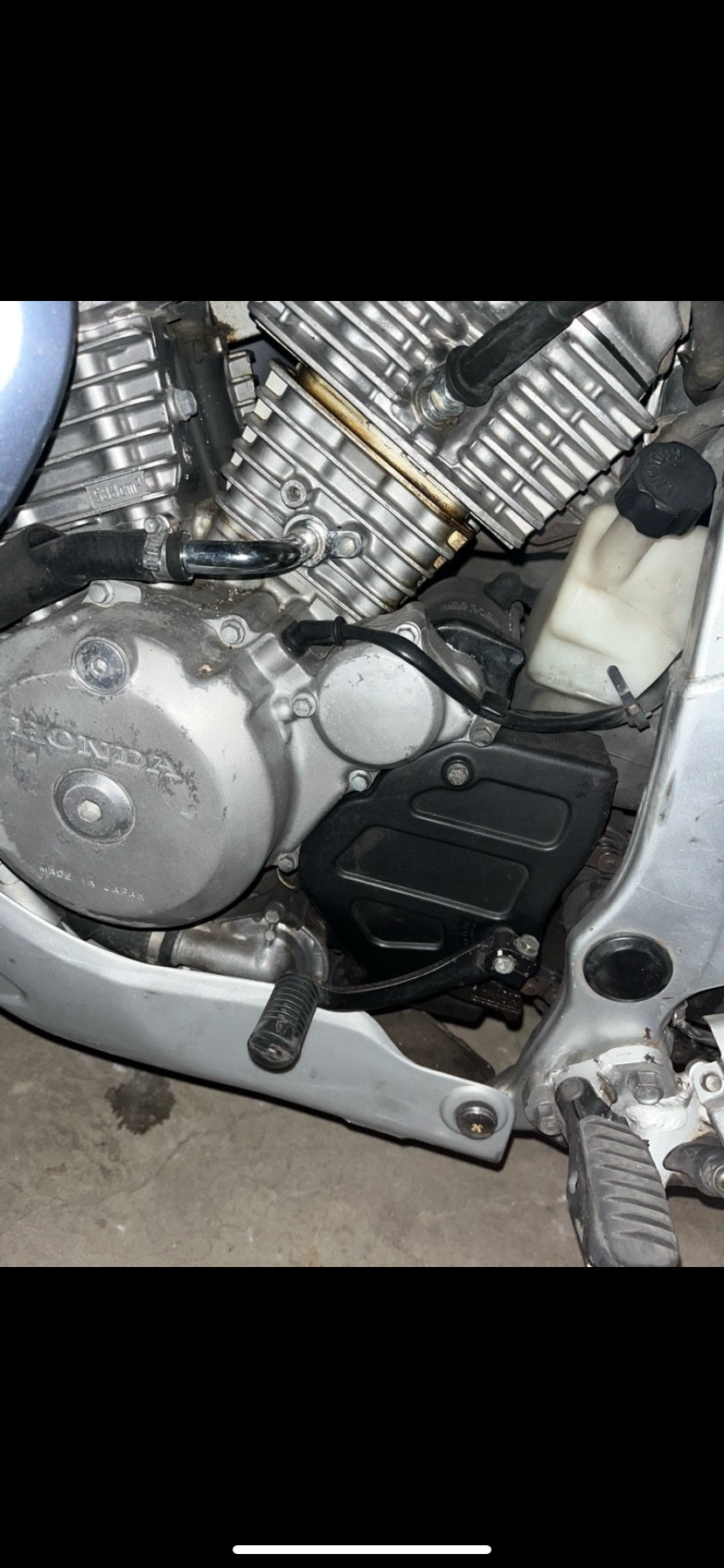 J’ai pensé aussi à une fuite d’essence par la pipe d’admission peut être ou effectivement au joint de couvre culasse. J’ai demandé au proprio si la moto consomme plus d’huile, j’attends son retour. Elle est à vendre 1500€ couleur noir et gris.