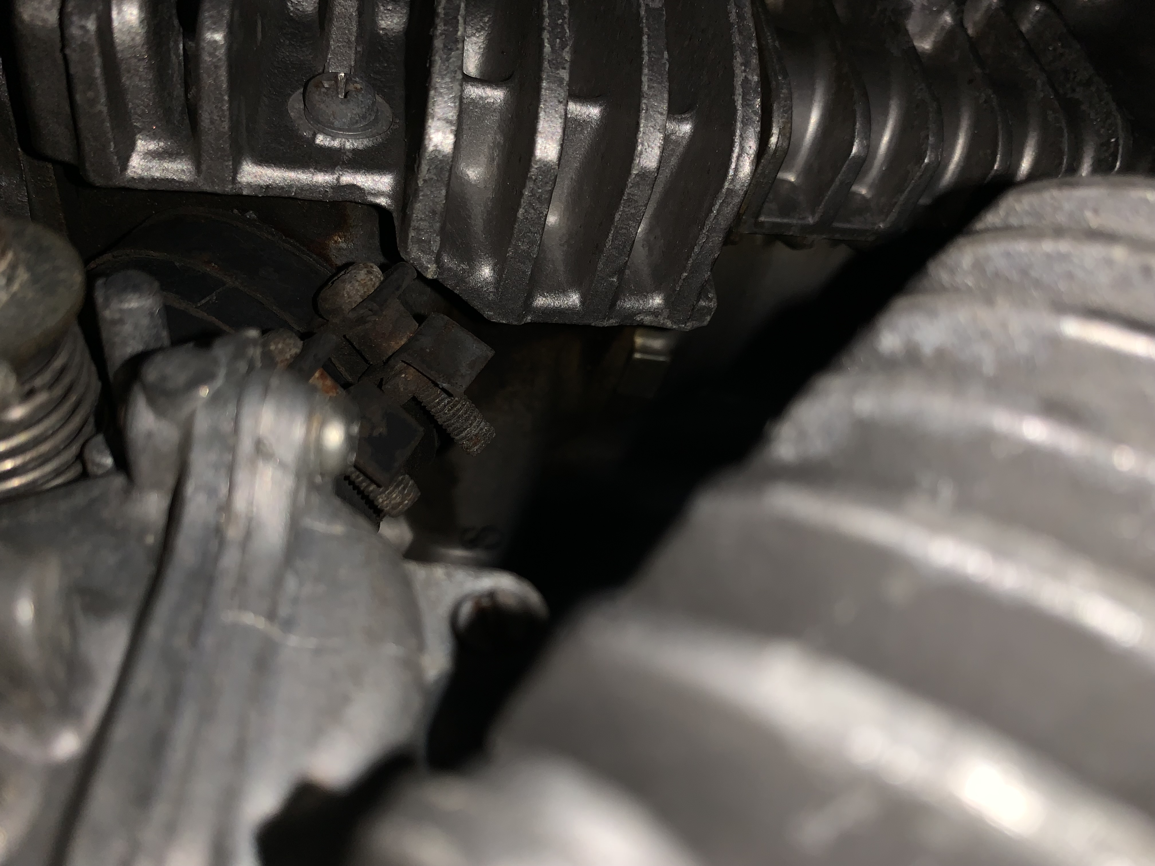 Essai de démarrage pour entendre le moteur en adaptant une batterie que le vendeur avait acheté mais pas la bonne taille. Aucun bruit suspect, appareent ça faisait 2 ans qu’elle n’avait pas démarré. j’ai de suite contrôler les colliers des pipes d’admission et les 2 côté culasse sont serrer au max mai tourne en les bougeant à la main, je ne crois pas au joint de culasse.