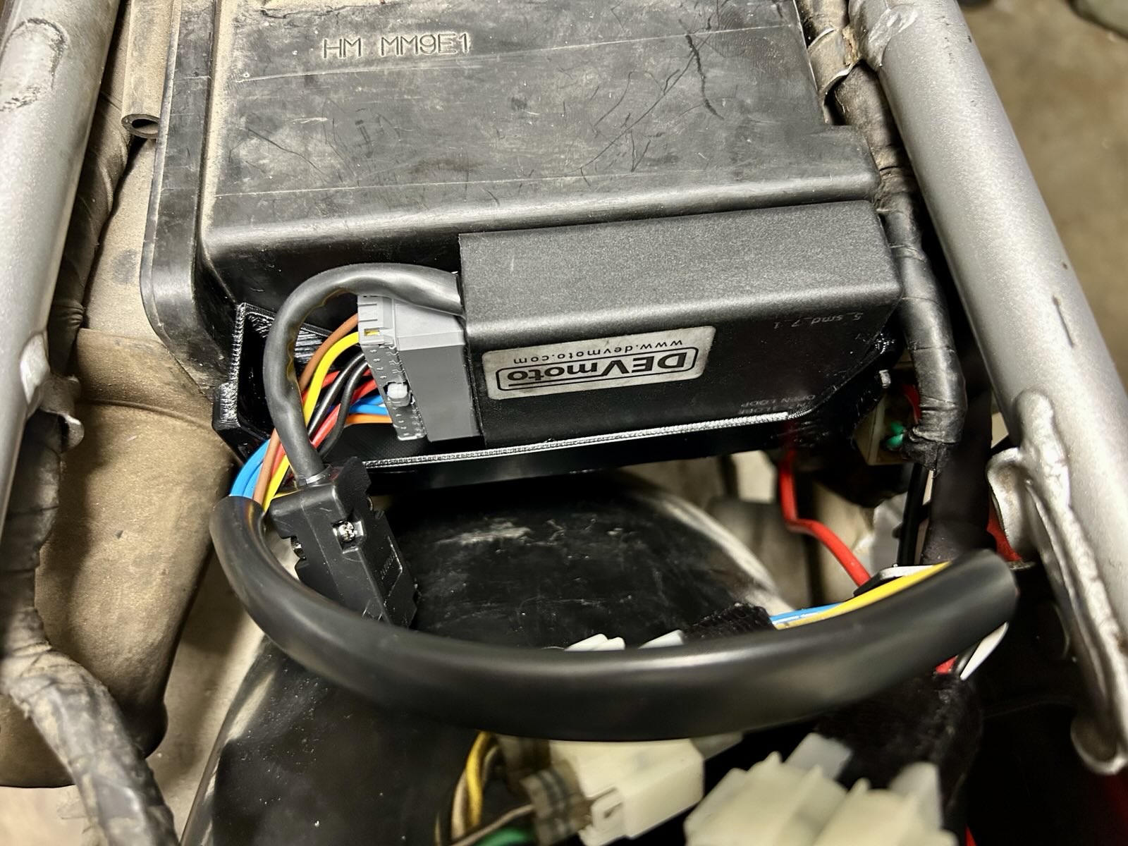Je n'ai pas trouvé comment fixer correctement le boîtier Ignitech sur ma Transalp, donc j'ai fait ça :