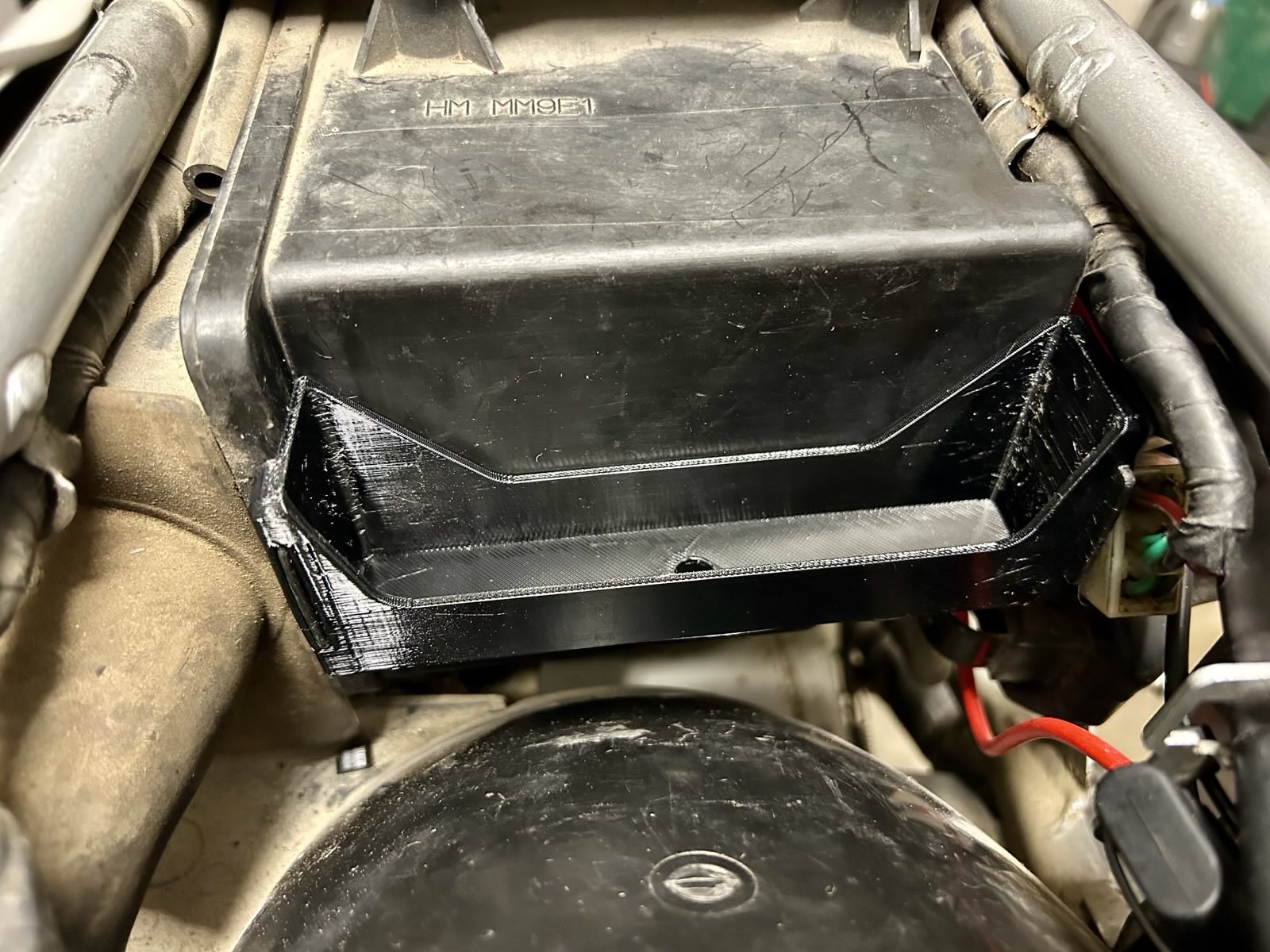 Le support est fixé sur les encoches d’origine qui dépassent de la boîte à air, aucune modification à faire