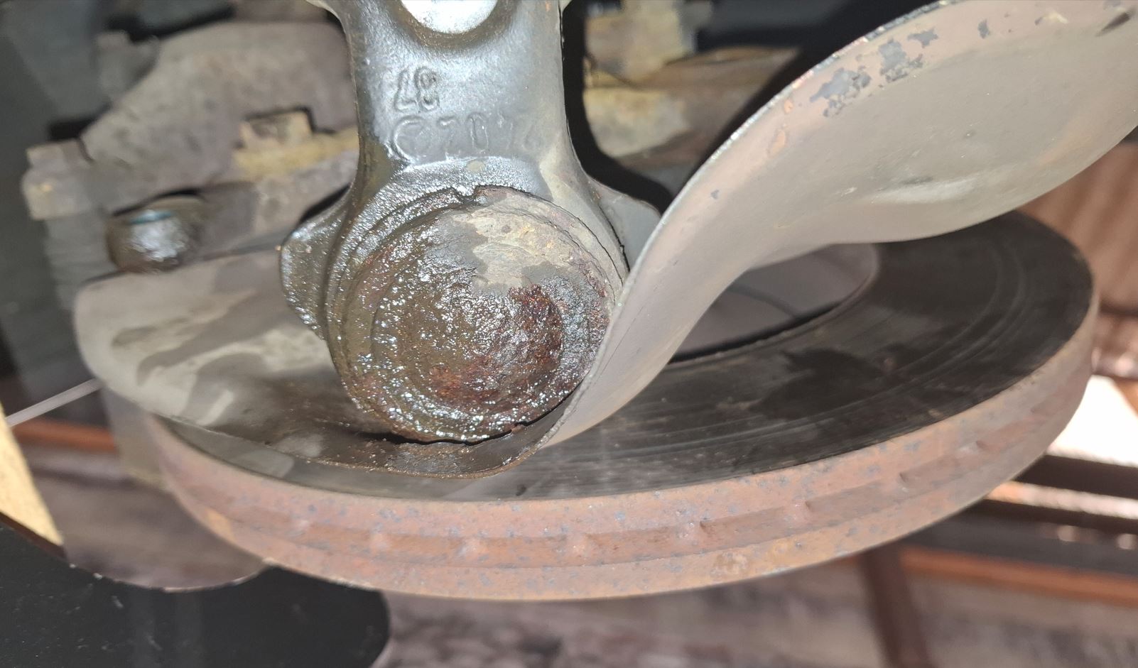 Bon, je vous épargne les différentes méthodes qui ont avorté pour extraire cette S...RIE de rotule, on passe à l'arrachage : pas d'autre choix, il n'y aura que la méthode bourrin ++++ pour la sortir, elle est soudée sur le triangle.