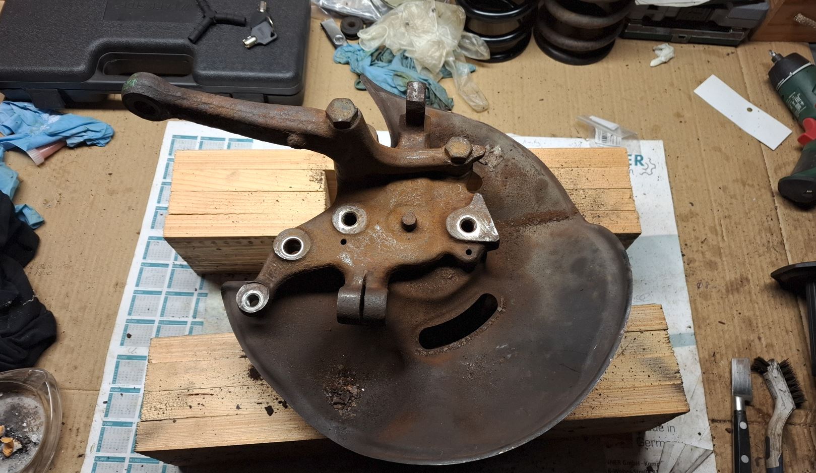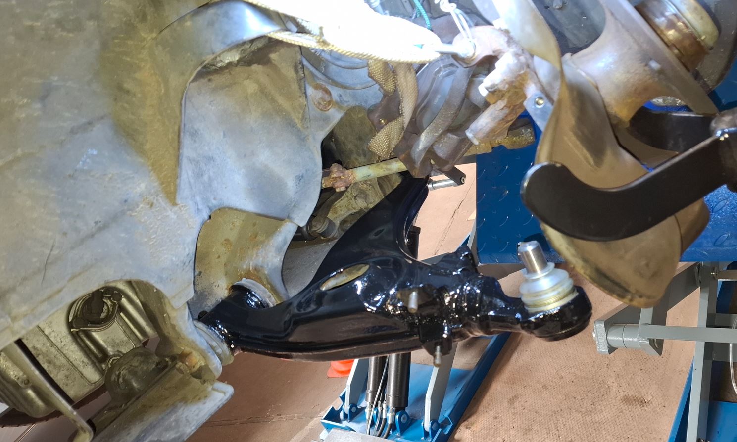 Haaa, c'est béta : la rotule que j'envisage de remplacer bute dans la tôle et ne veut pas sortir du pivot.